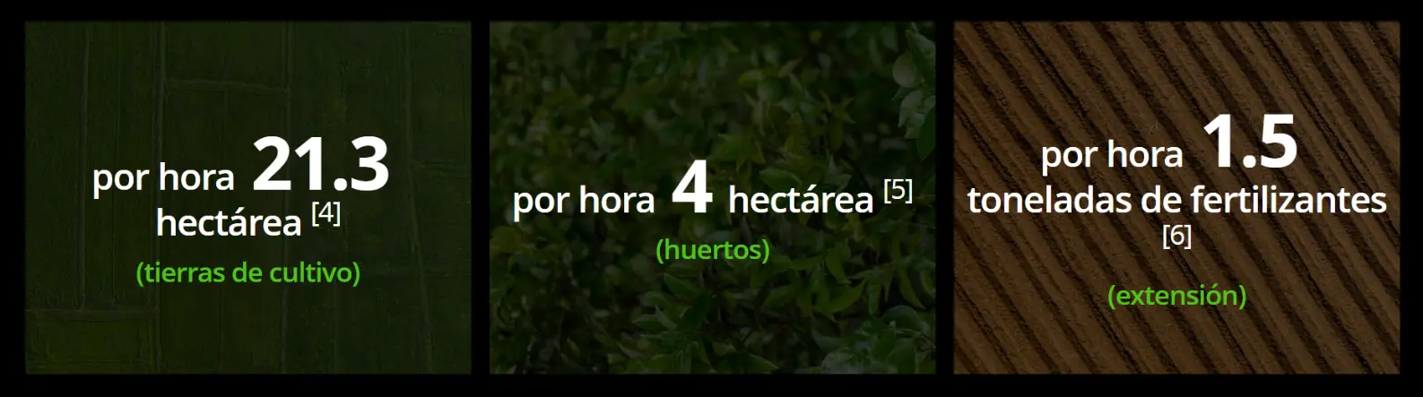 ofrece una cobertura precisa y segura incluso en terrenos irregulares o cultivos densos. Su sistema