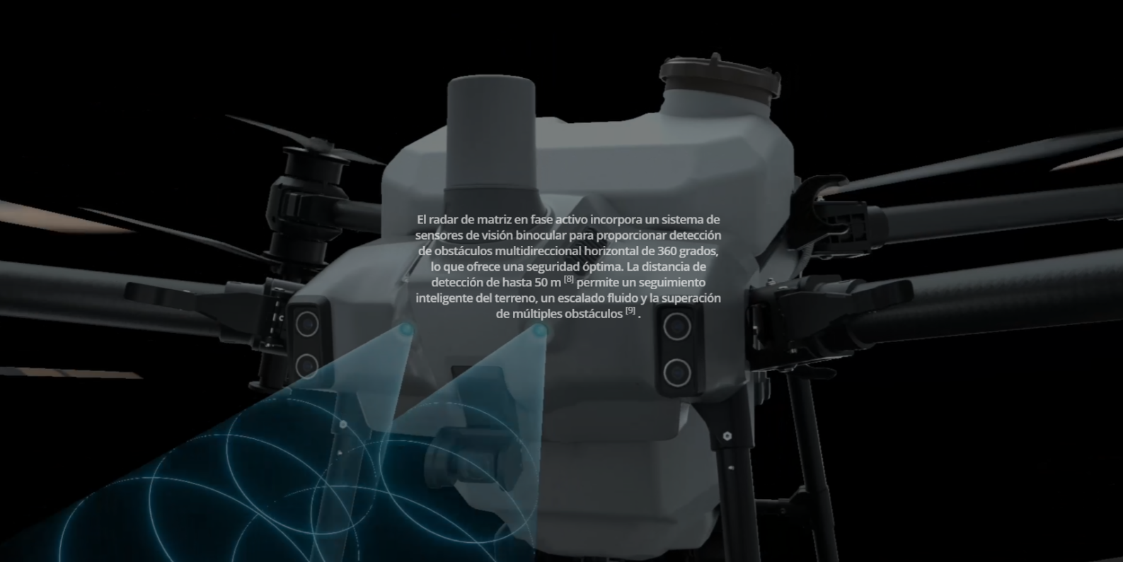 Equipado con radar de matriz activa, visión binocular y un sistema de pulverización atomizada dual,