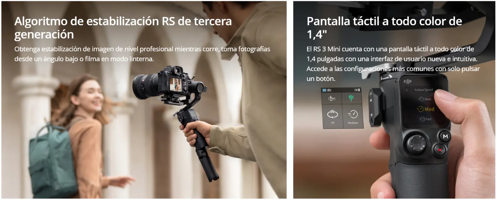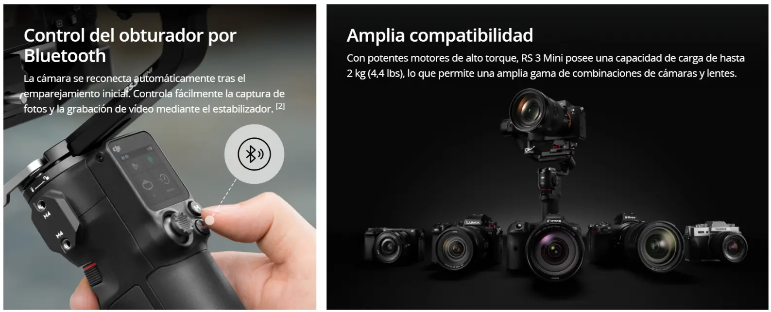 El DJI RS 3 Mini es un estabilizador de cámara ultraligero diseñado para cámaras mirrorless y DSLR. Con una capacidad de carga robusta, estabilización avanzada de tres ejes y un diseño compacto, es la solución ideal para creadores de contenido y cineastas que buscan un equipo portátil sin comprometer la calidad.